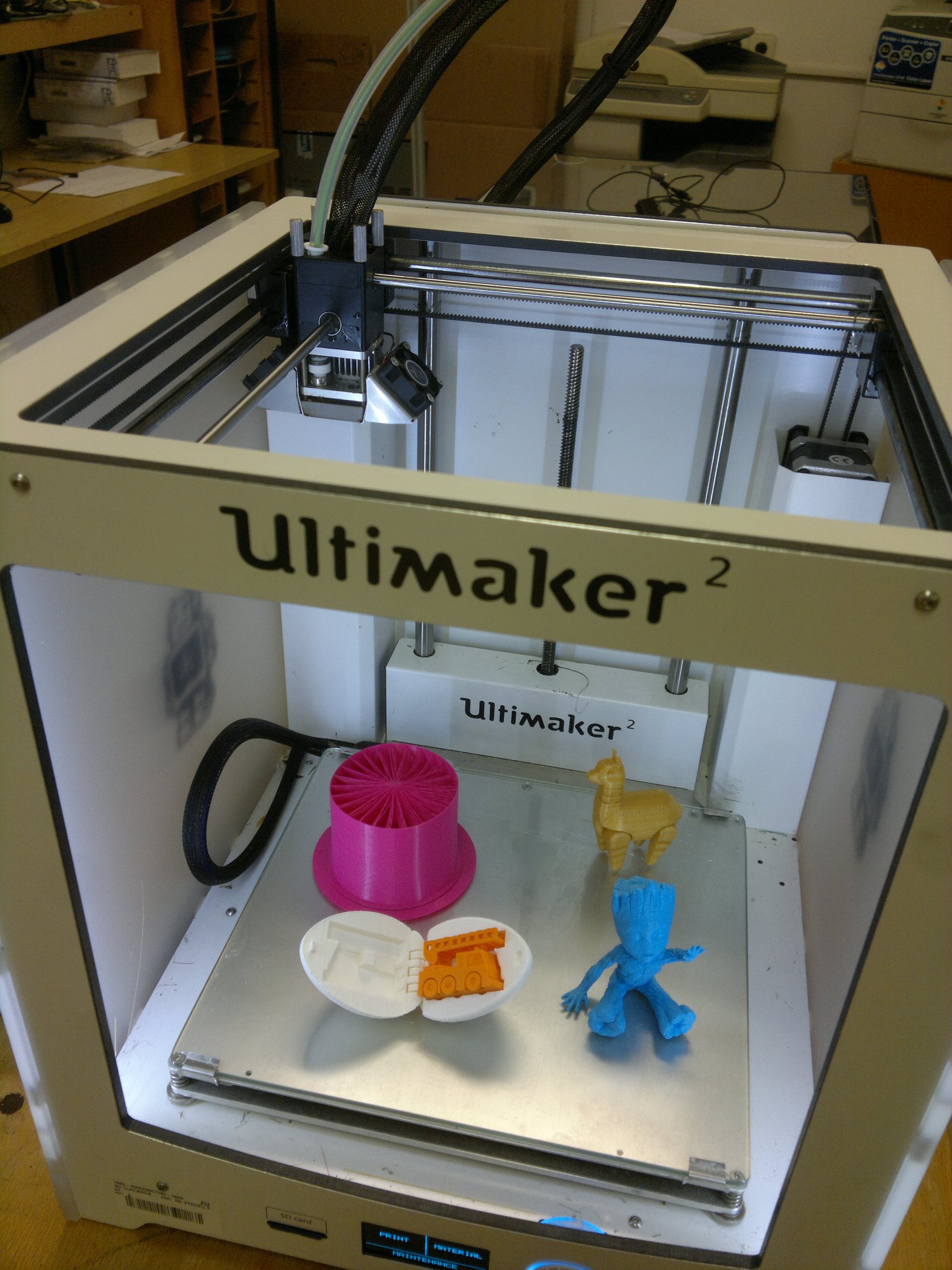 Prvou 3D tlačiarňou na Katedre technickej kybernetiky na Fakulte riadenia a informatiky bola Ultimaker 2, ktorá na tlač používa tlačové struny s priemerom 2.85mm. Postupom času sme ju prerobili a v súčasnosti dokáže tlačiť z filamentu so štandardným rozmerom 1.75mm.