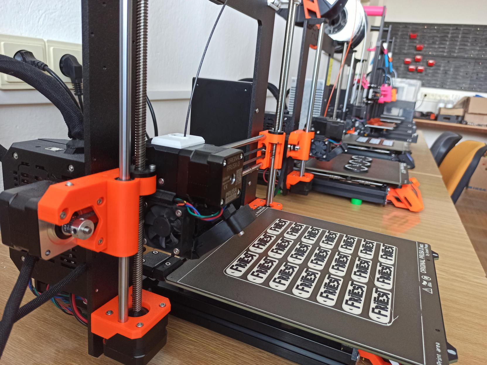 Veľká pomoc fakulty nám umožnila rozvinúť naše vybavenie o svetoznámu značku tlačiarní Prusa model i3 MK3, ktoré sa radia medzi jedny z najlepších FDM/FFF 3D tlačiarní dodnes.