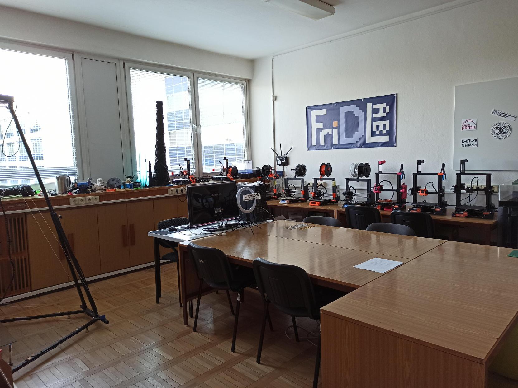 Nadviazanie spolupráce so spoločnosťou GlobalLogic Slovakia nám umožnilo vylepšiť priestory FriDLabu a zároveň rozšíriť náš sortiment 3D tlačiarní a vybavenia.